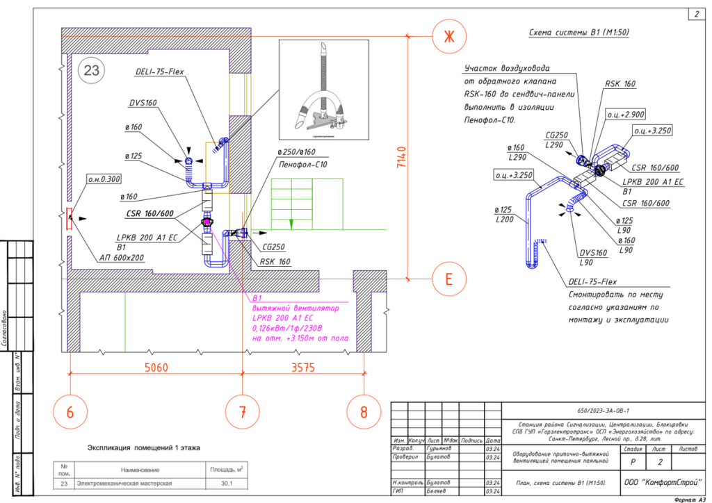 В разработке у нас находится рабочая документация для оборудования приточно-вытяжной вентиляции помещения паяльной станции района сигнализации, централизации, блокировки СПб ГУП «Горэлектротранс» ОСП «Энергохозяйство» на Лесном проспекте